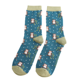 Winter Owls Socks Teal