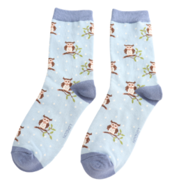 Winter Owls Socks Powder Blue