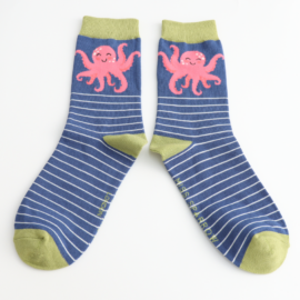 Pink Octopus Socks Navy