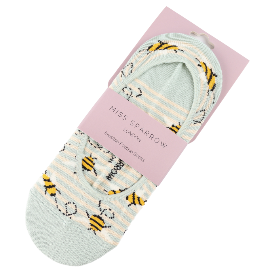 Bees Stripes Invisible Footsie Socks Duck Egg & Cream