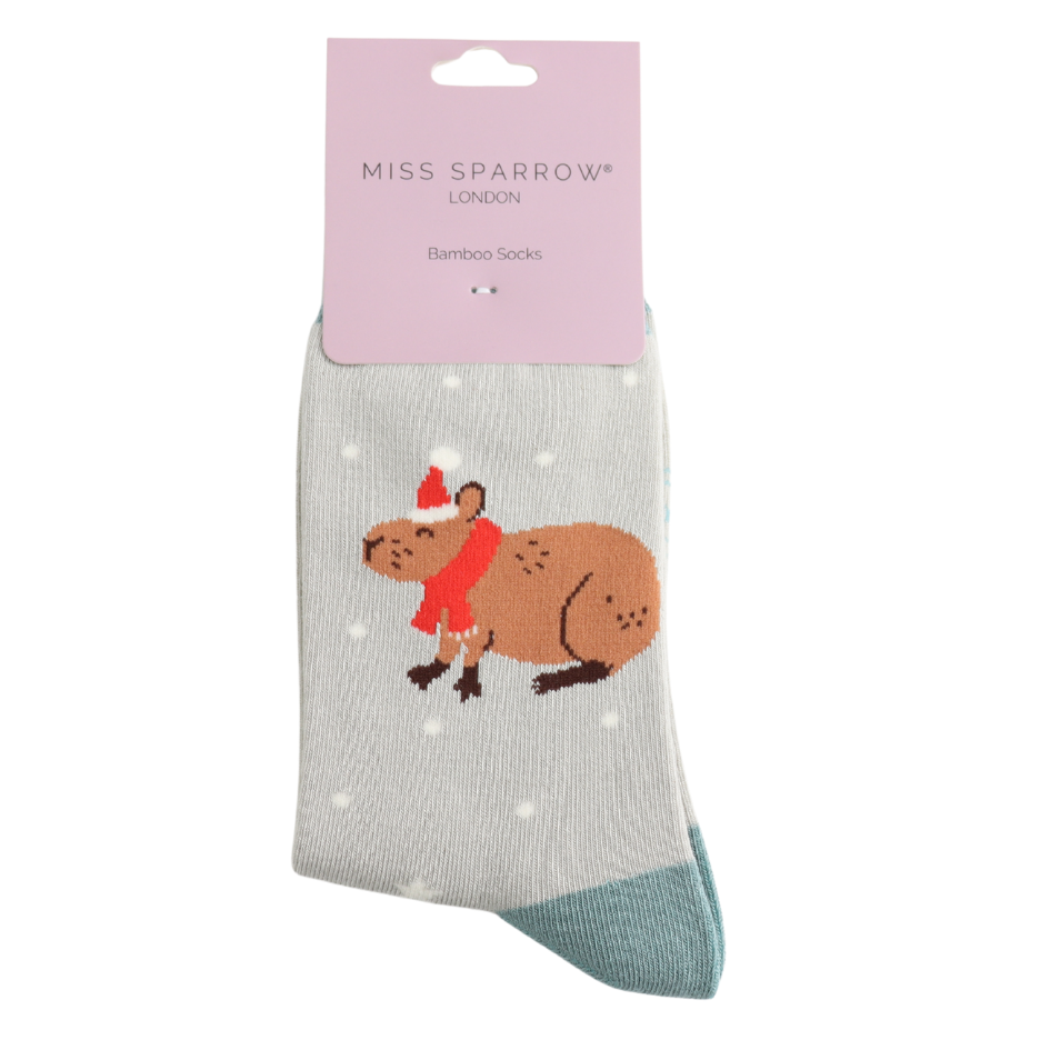 Christmas Capybara Socks Silver