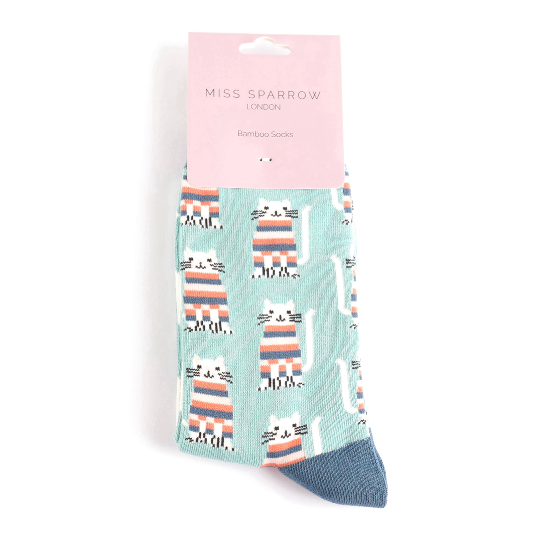 Cosy Kitties Socks Duck Egg