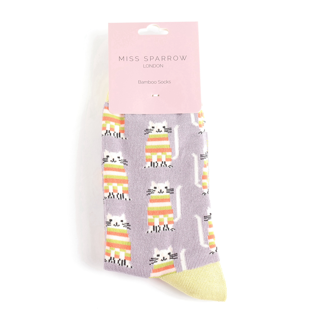 Cosy Kitties Socks Lavender