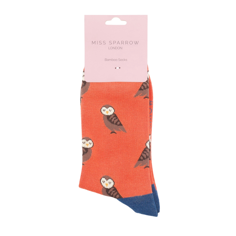 Cute Owls Socks Burnt Orange
