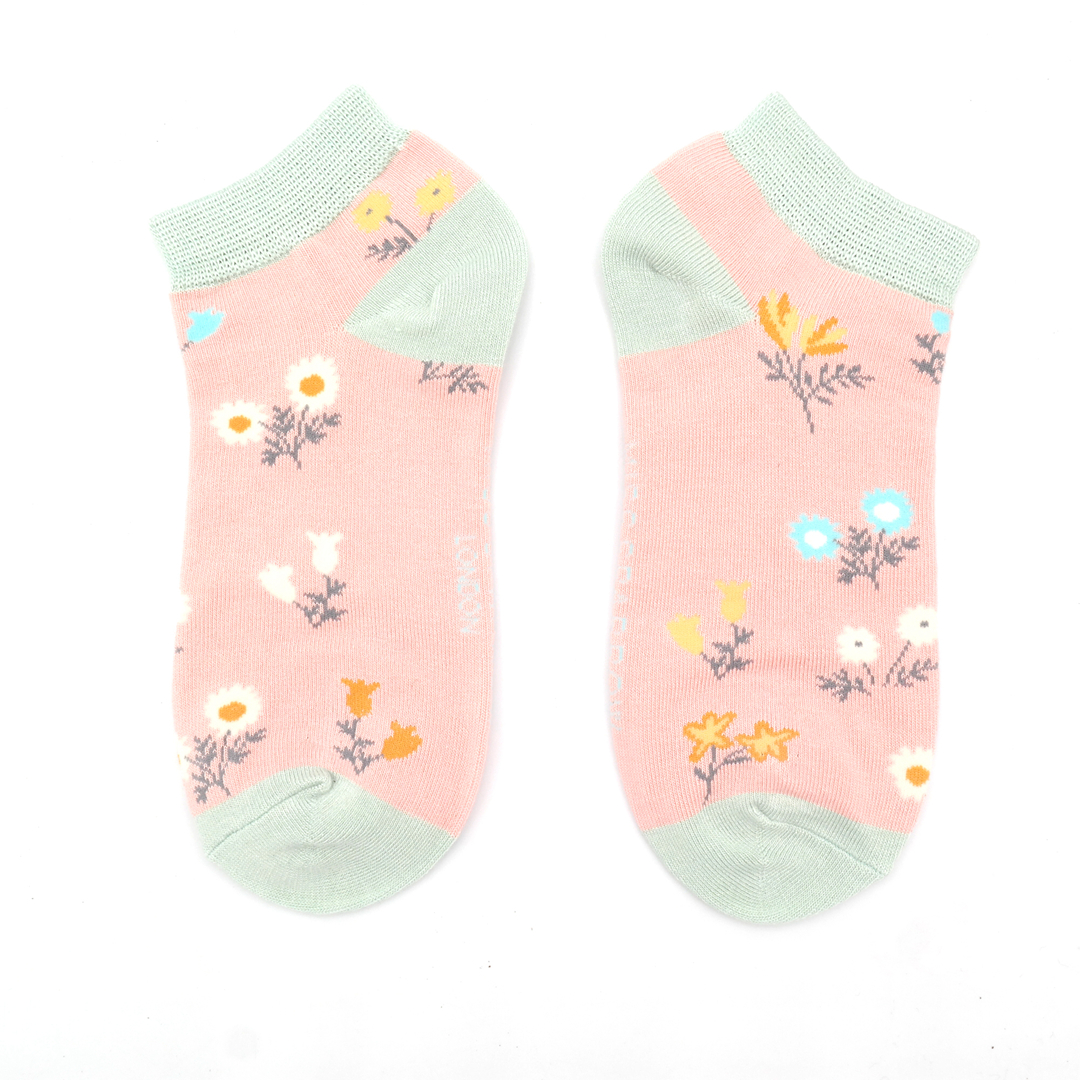 Dainty Floral Trainer Socks Dusky Pink
