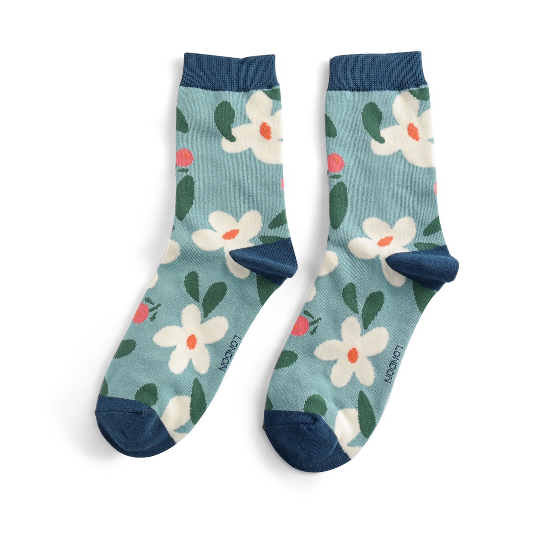 Falling Daisies Socks Duck Egg