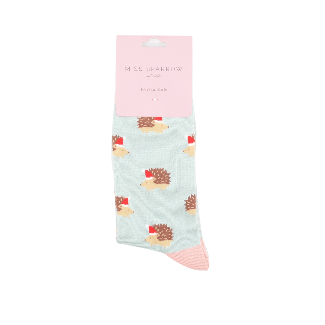 Festive Hedgehogs Socks Duck Egg