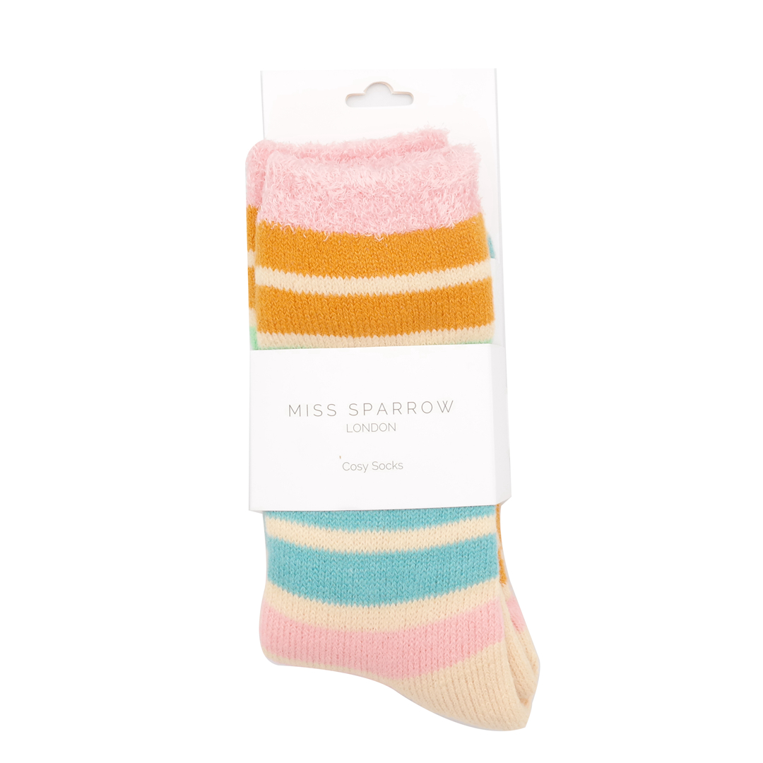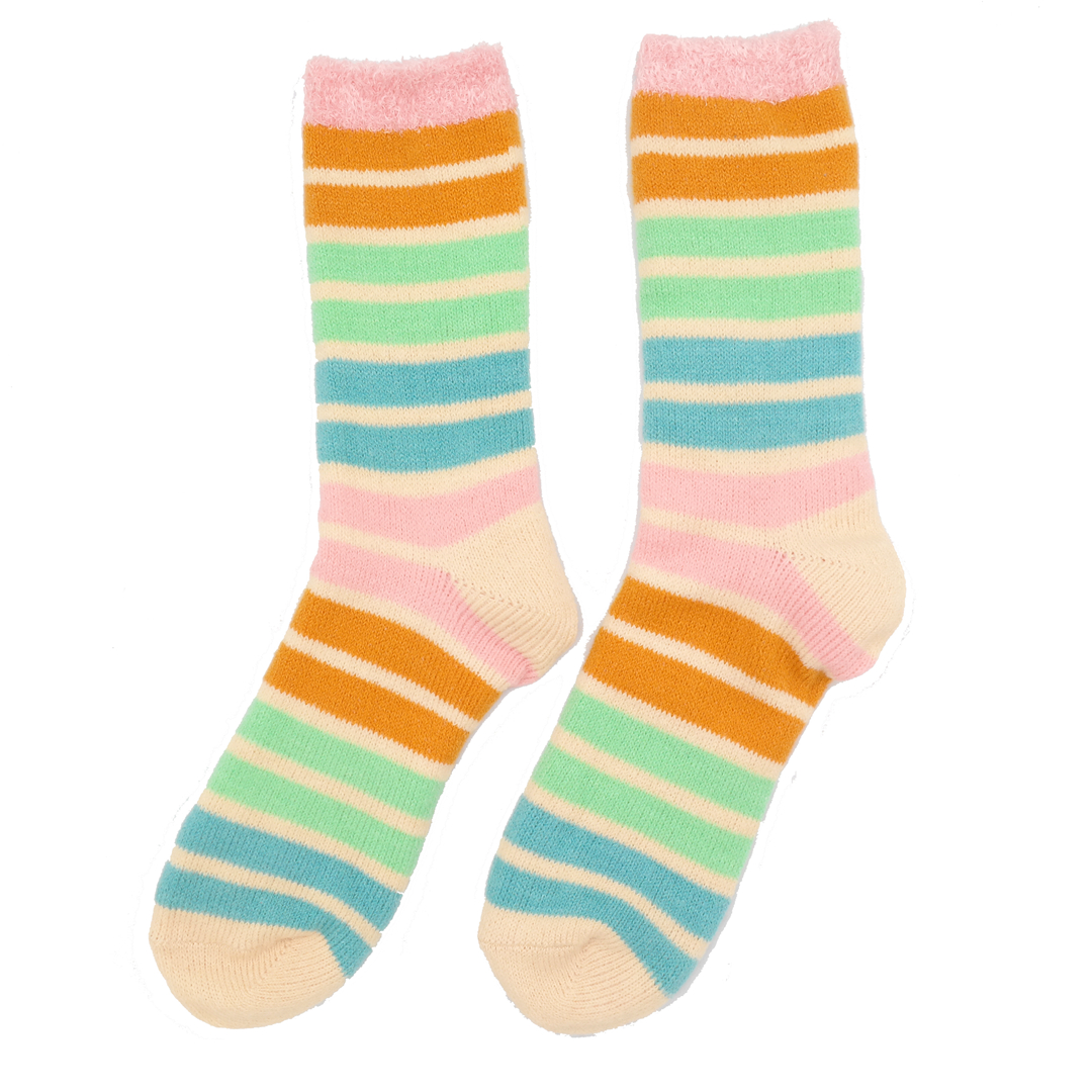 Fluffy Stripes Socks Duck Egg