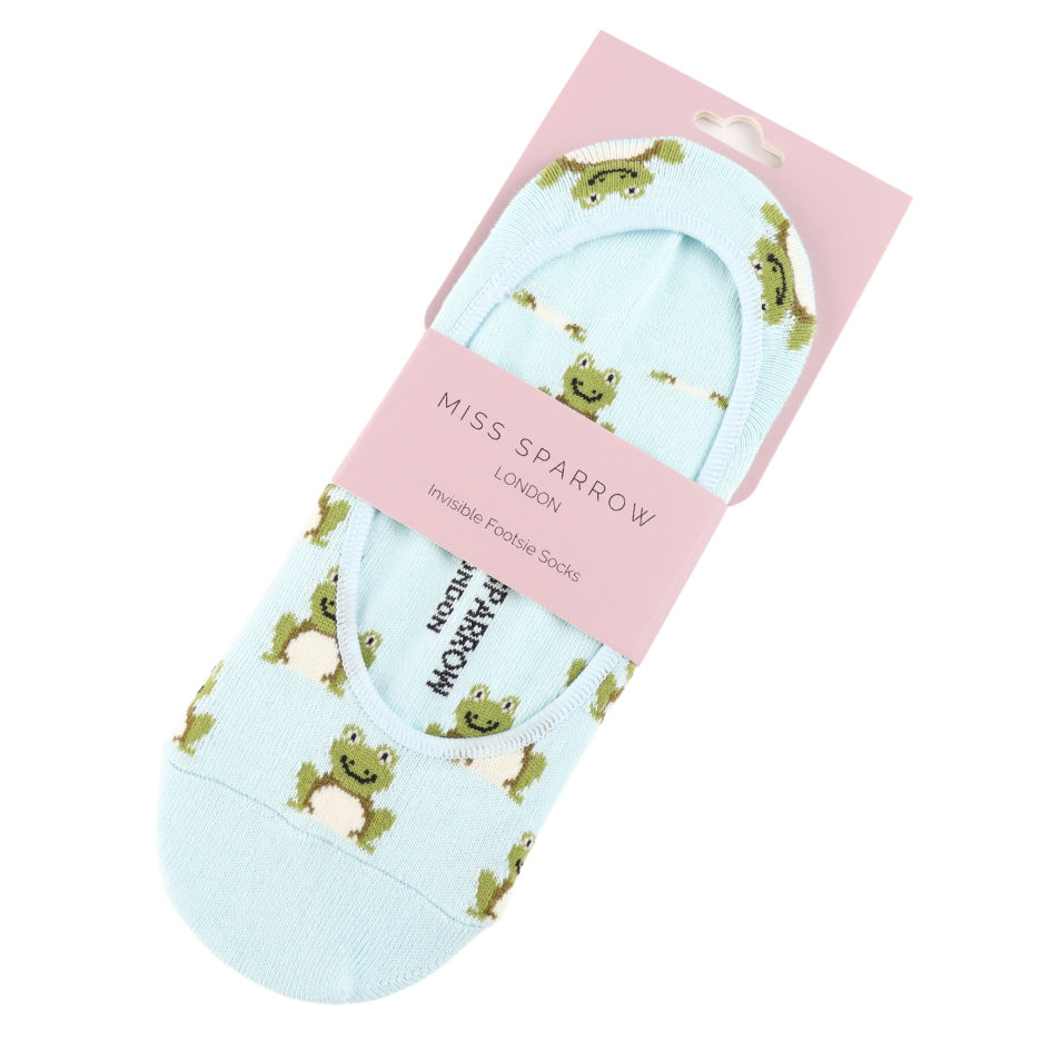 Frogs Invisible Footsie Socks Light Blue