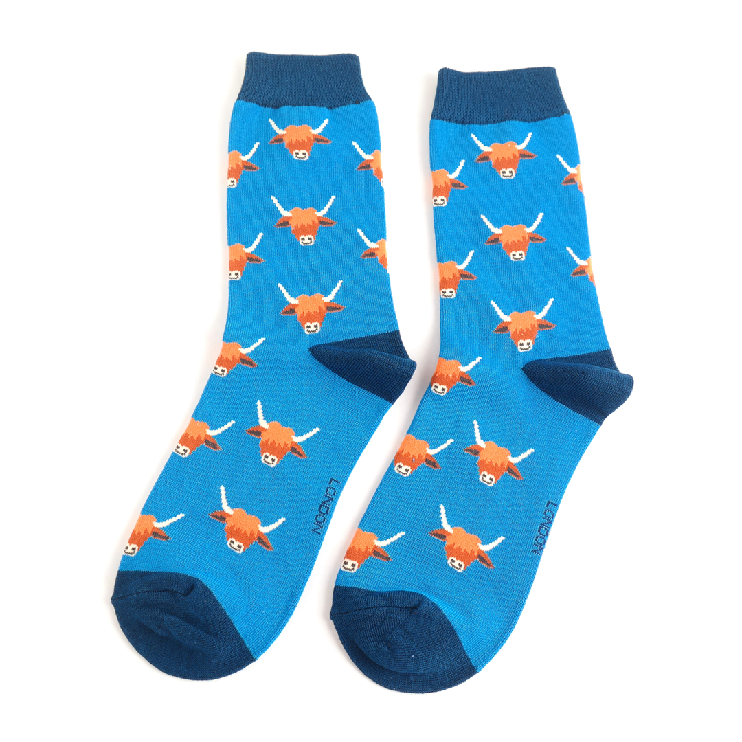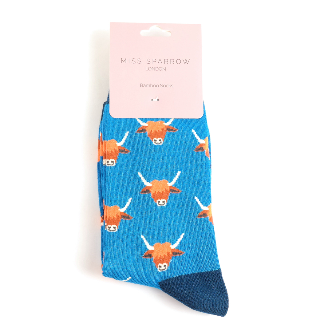 Highland Cows Socks Blue