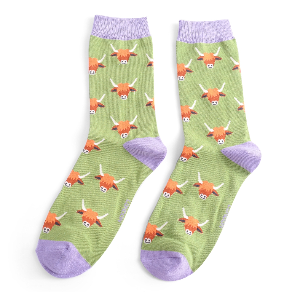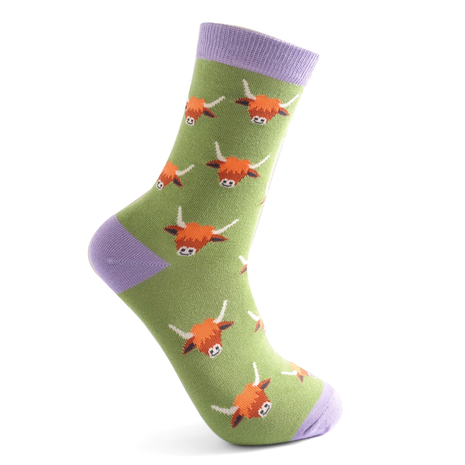 Highland Cows Socks Green