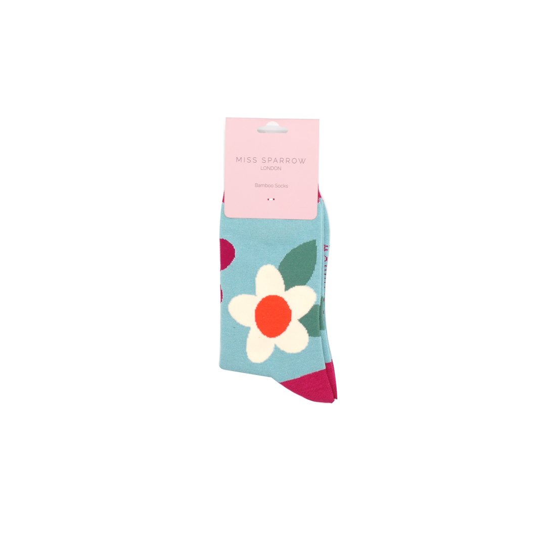 Large Flowers Socks Duck Egg