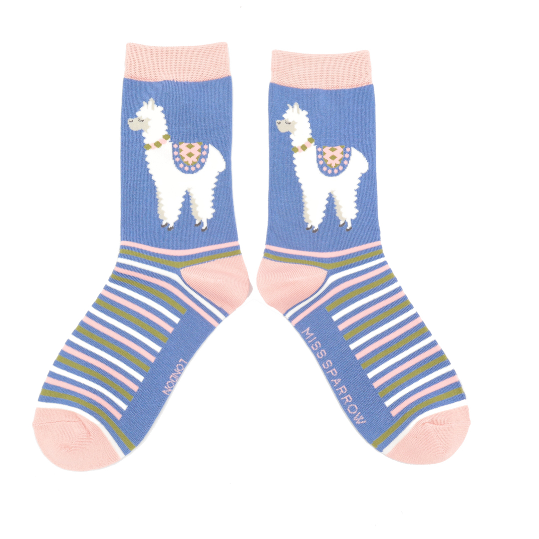 Llama Stripes Socks Denim