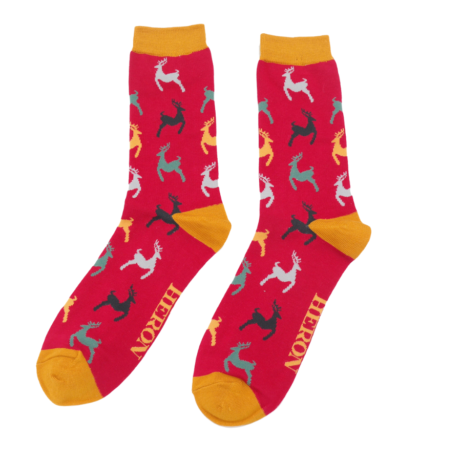 Mr Heron Leaping Deer Socks Red