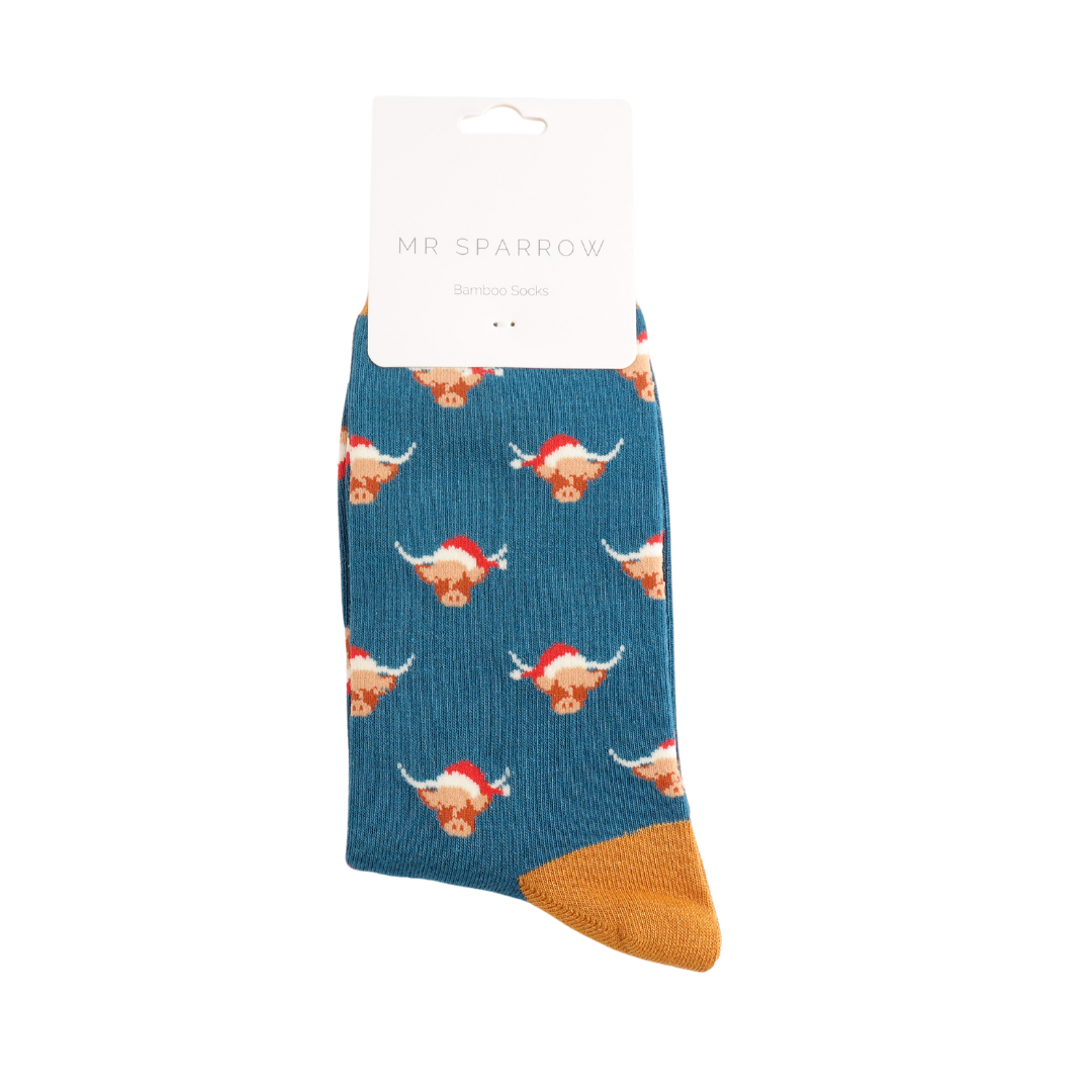 Mr Sparrow Xmas Highland Cows Teal