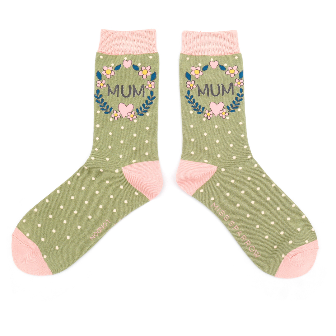 Mum Floral Wreath Socks Moss