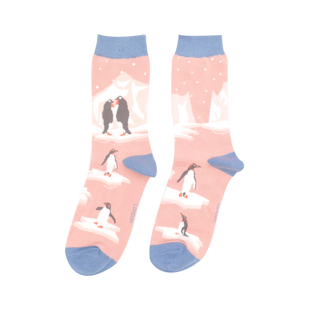 Penguins on Ice Socks Dusky Pink