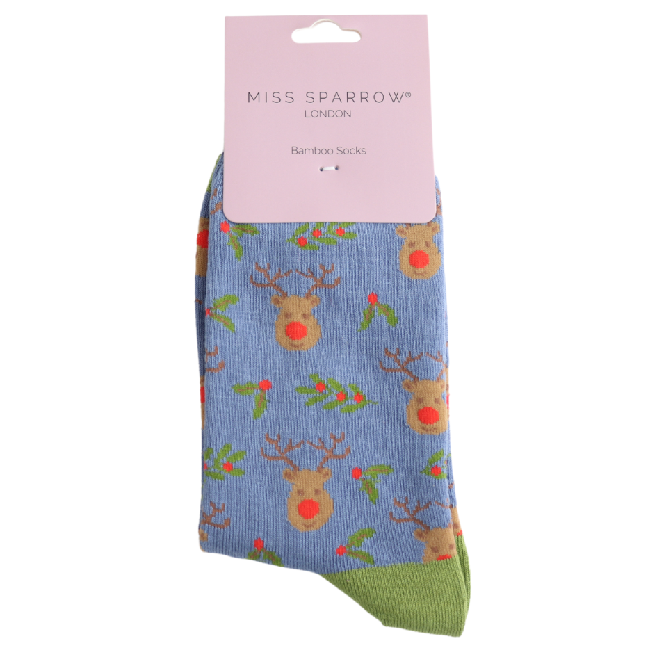 Reindeer & Holly Socks Denim