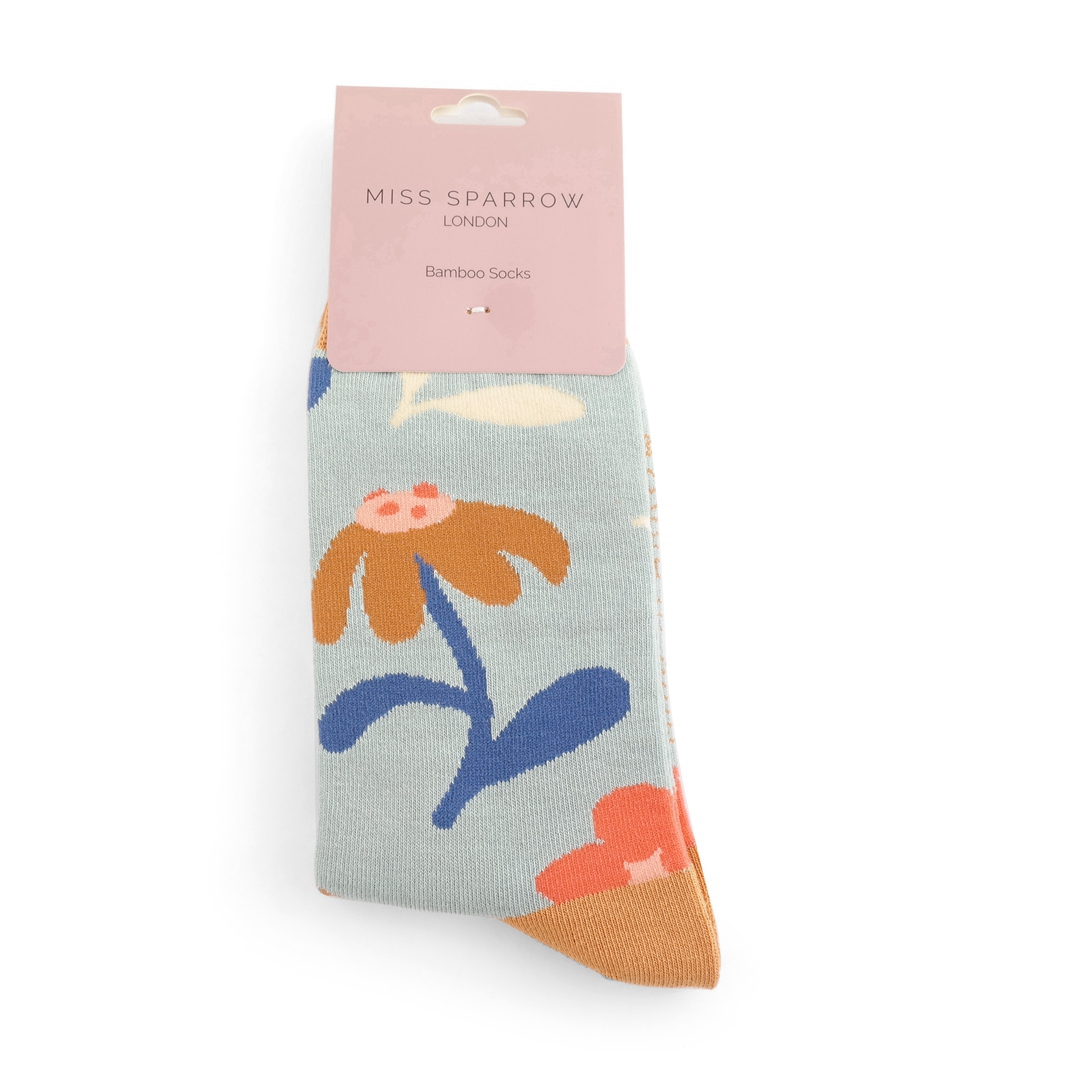 Retro Floral Socks Duck Egg