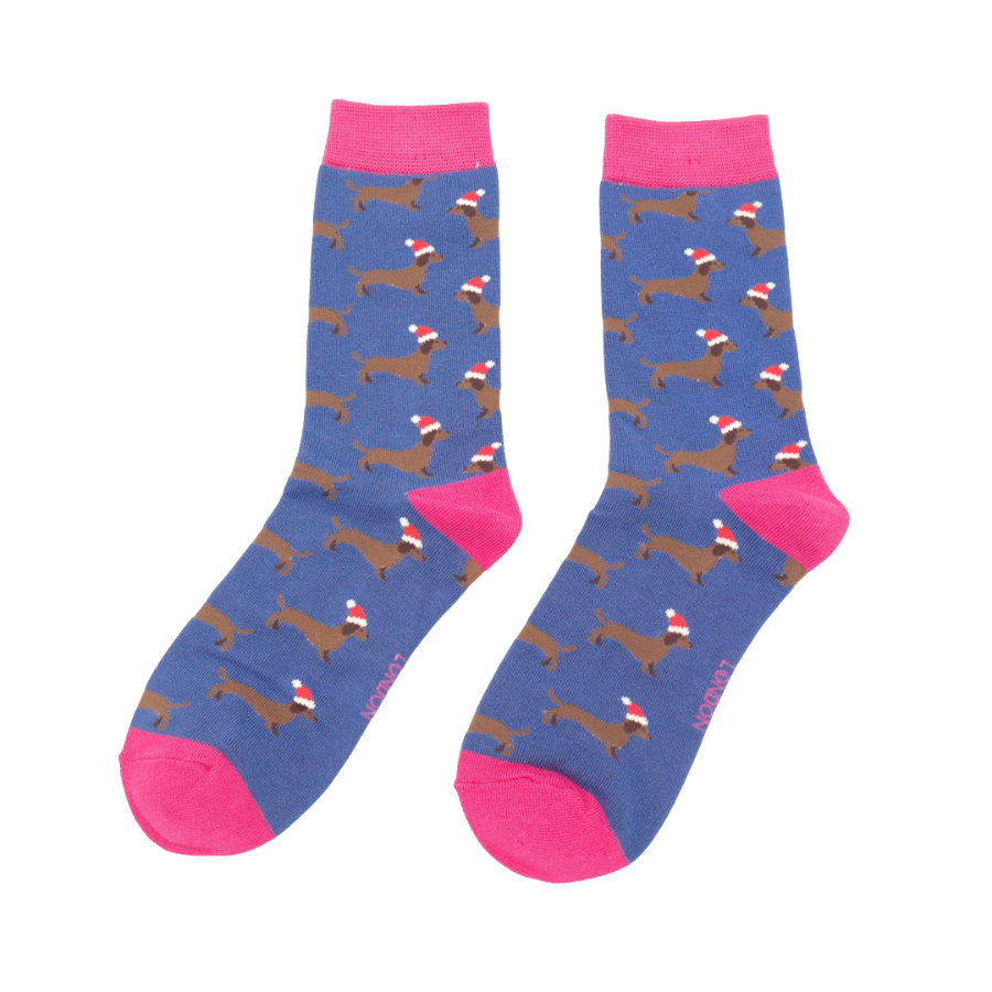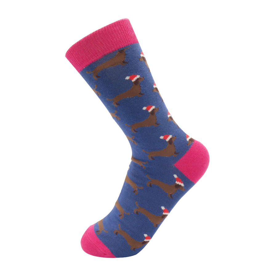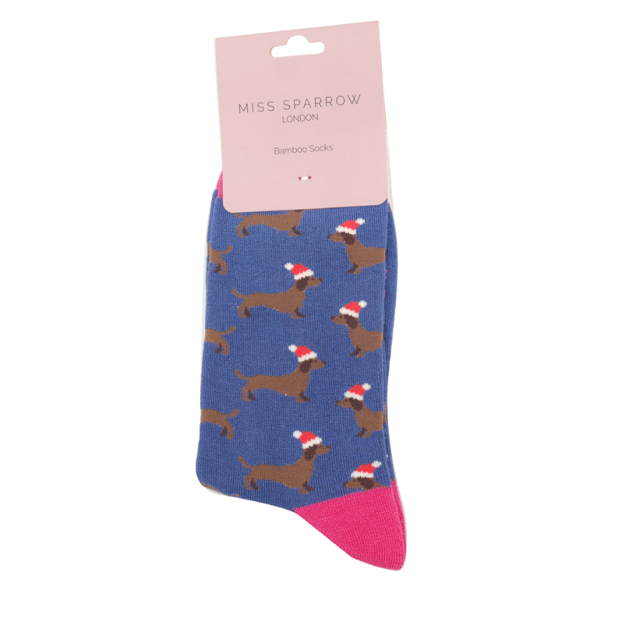 Sausage Dog Santa Socks Denim