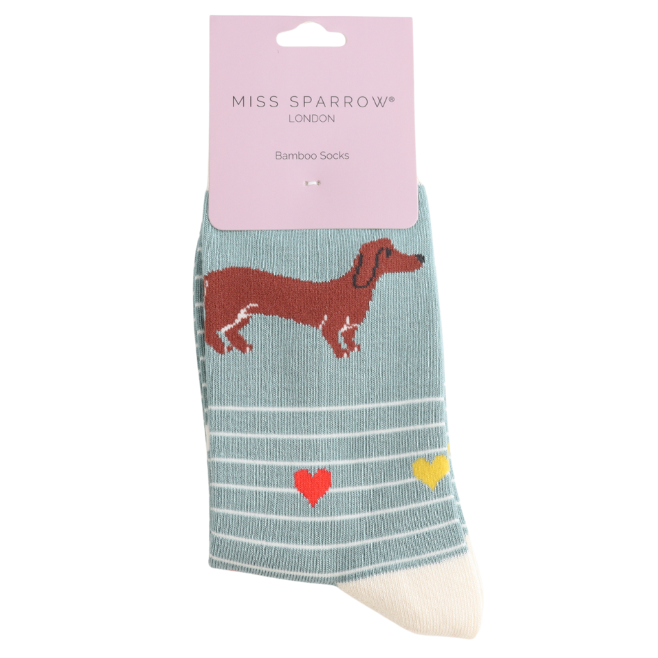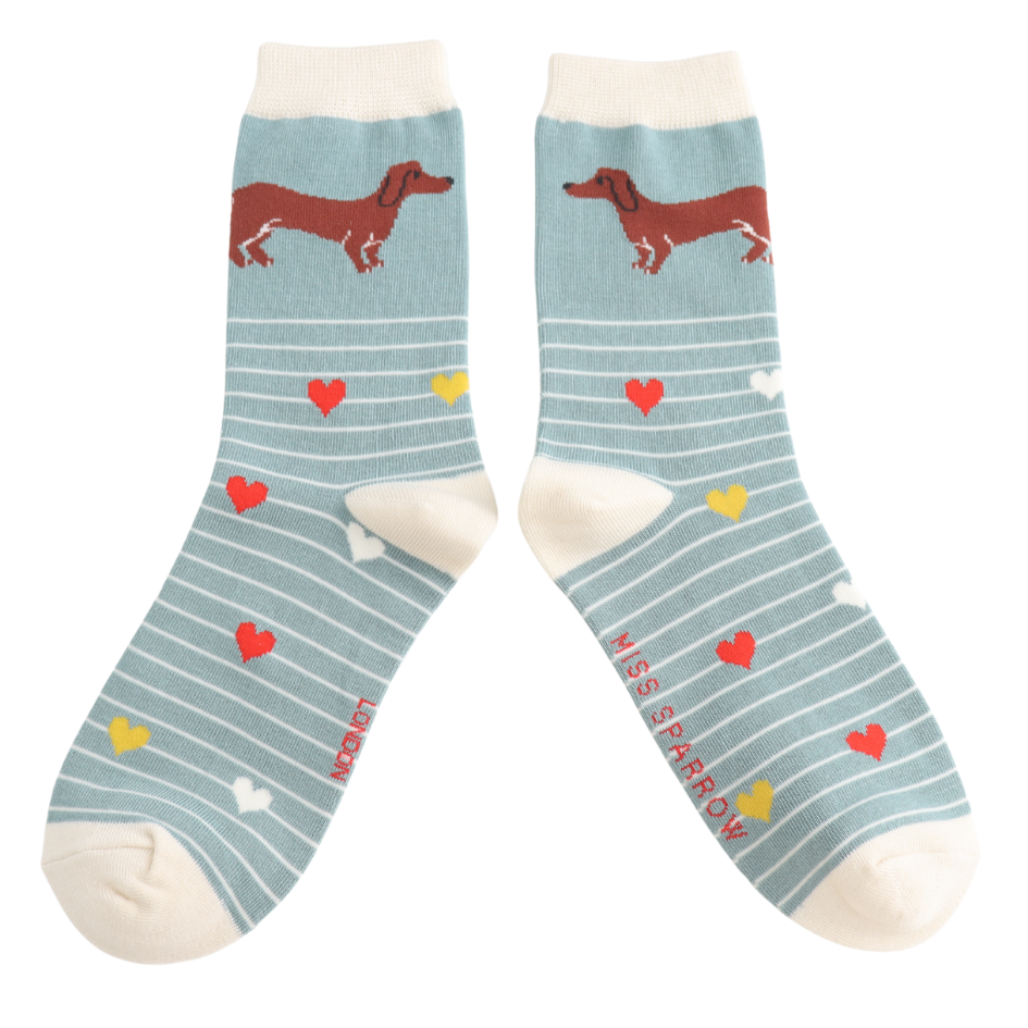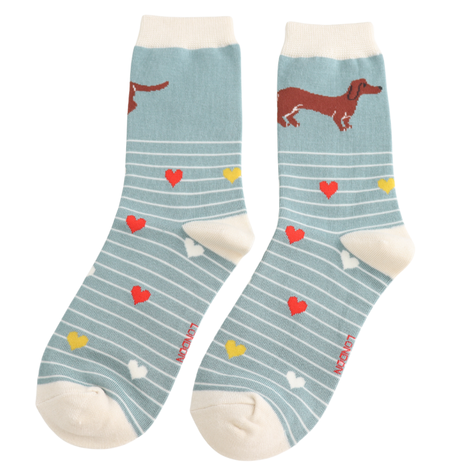 Sausage Dogs & Stripes Socks Duck Egg