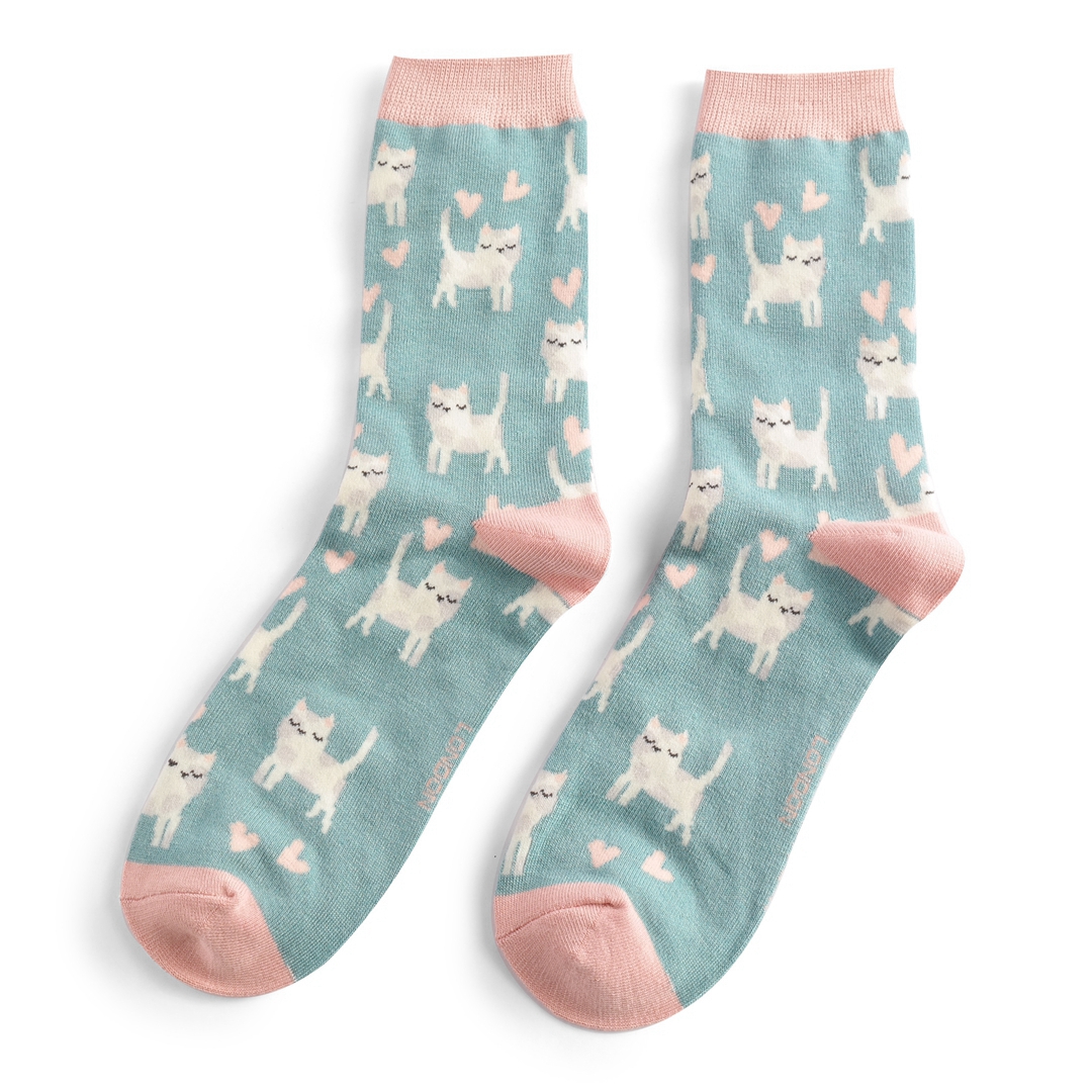 Sleepy Cats Socks Duck Egg