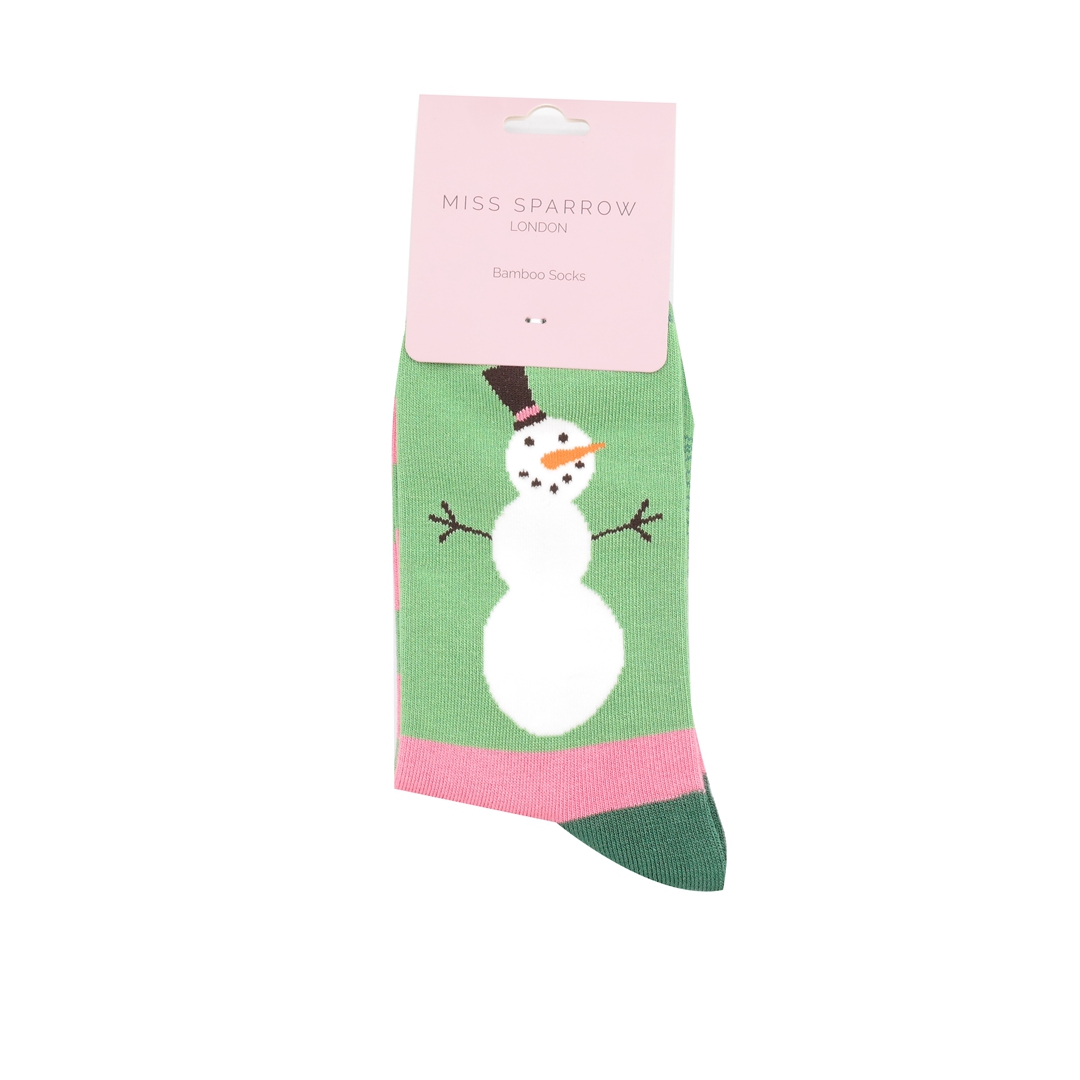 Snowmen Stripes Socks Green