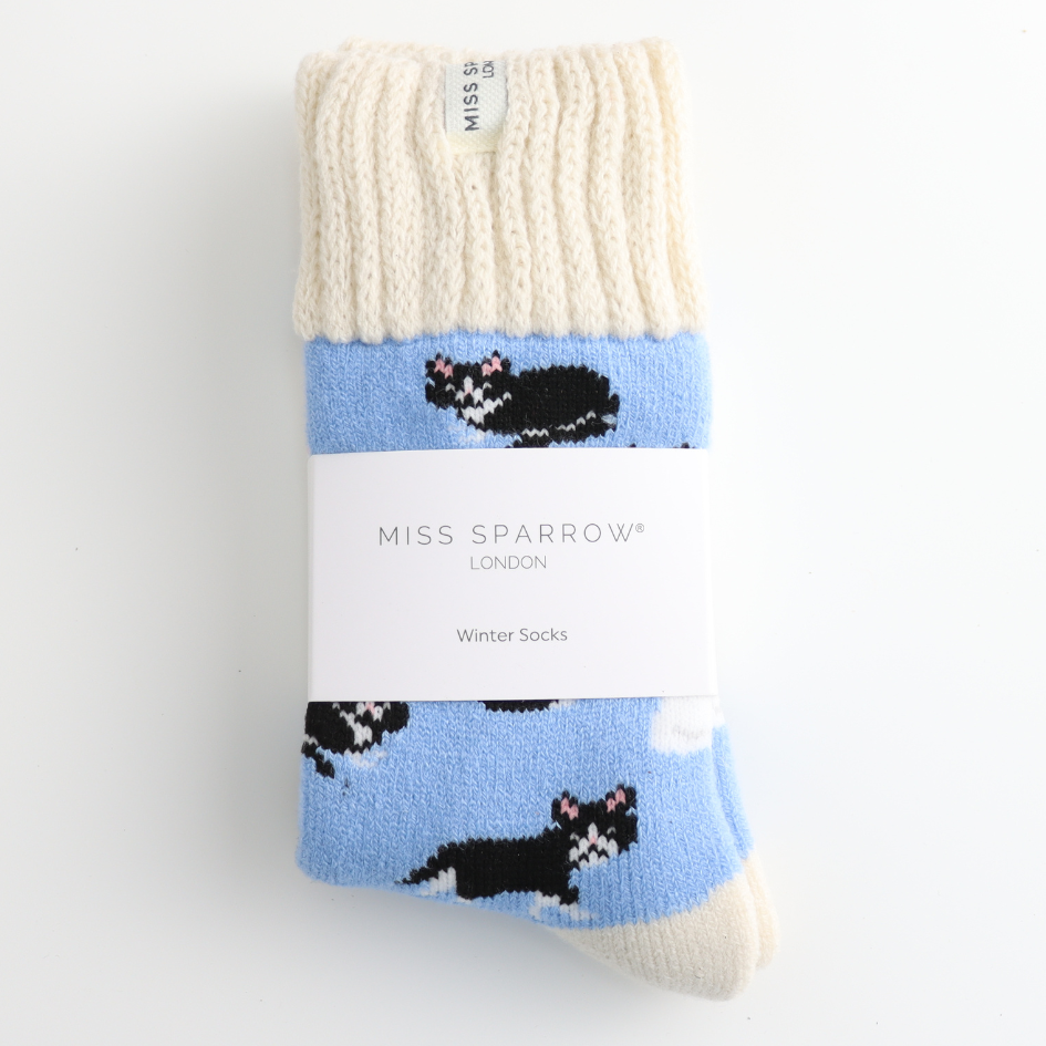 Winter Black & White Cats Powder Blue