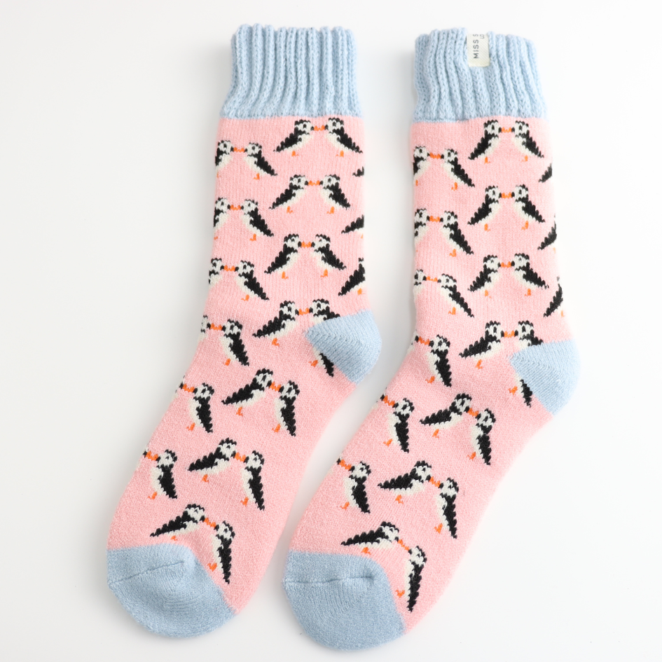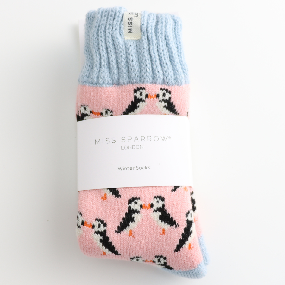 Winter Kissing Puffins Dusky Pink