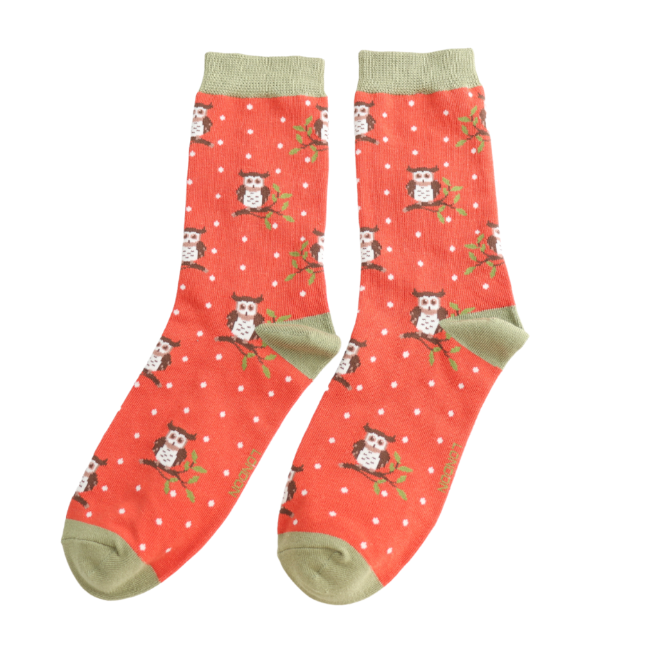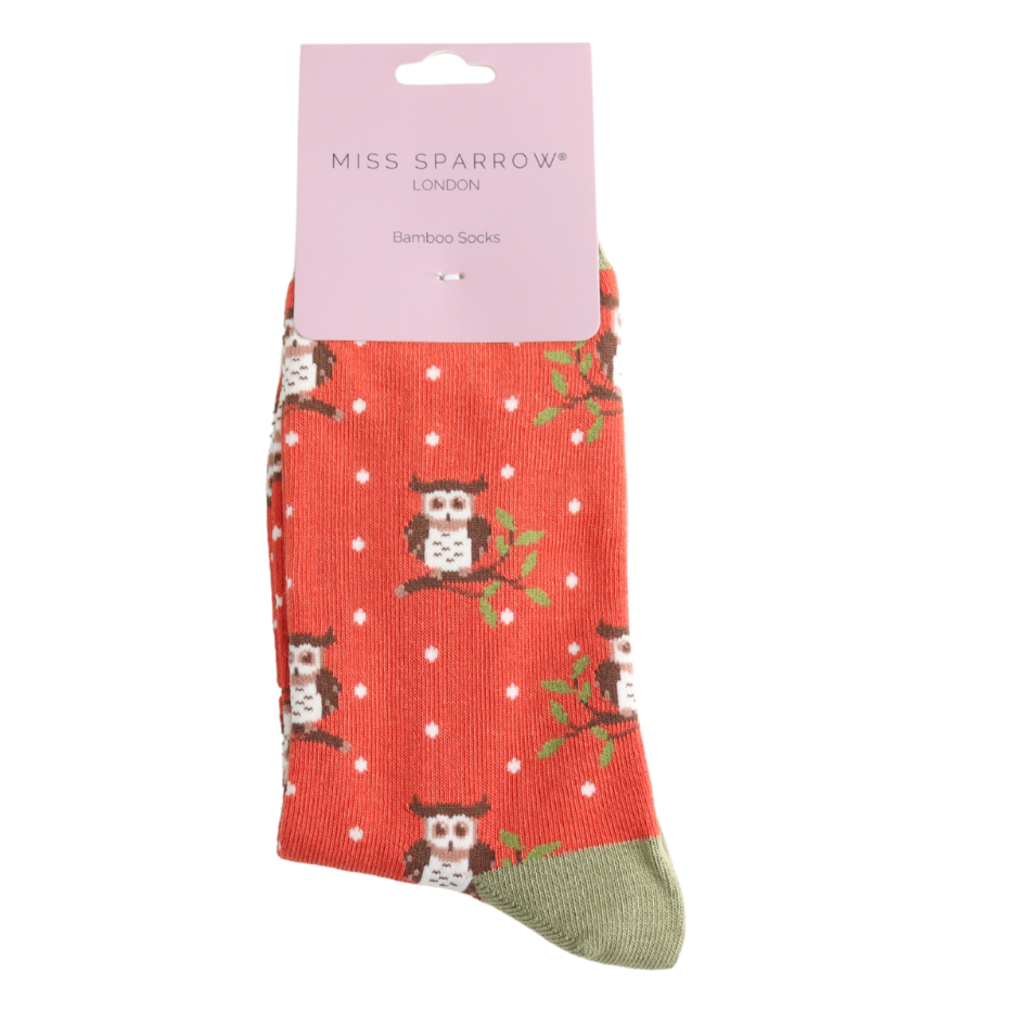 Winter Owls Socks Burnt Orange