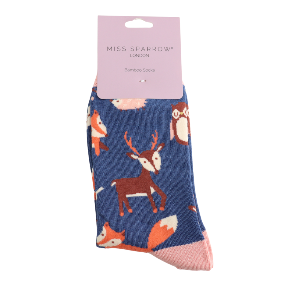 Woodland Animals Socks Navy